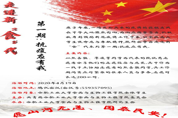 为响应国家号召,积极投身到抗击预防新冠疫情的工作中,切实提高当代大学生的使命感和奉献精神,2020年4月19日下午三点,bat365官网登录入口通过腾讯会议平台成功举办第一期走进新“食”代系列主题活动。本期活动主题为“抗疫应有我”,参会成员围绕该主题展开线上讨论与交流,同时有幸邀请到我院的志愿模范分享他们在抗击疫情中的志愿服务经历与收获。