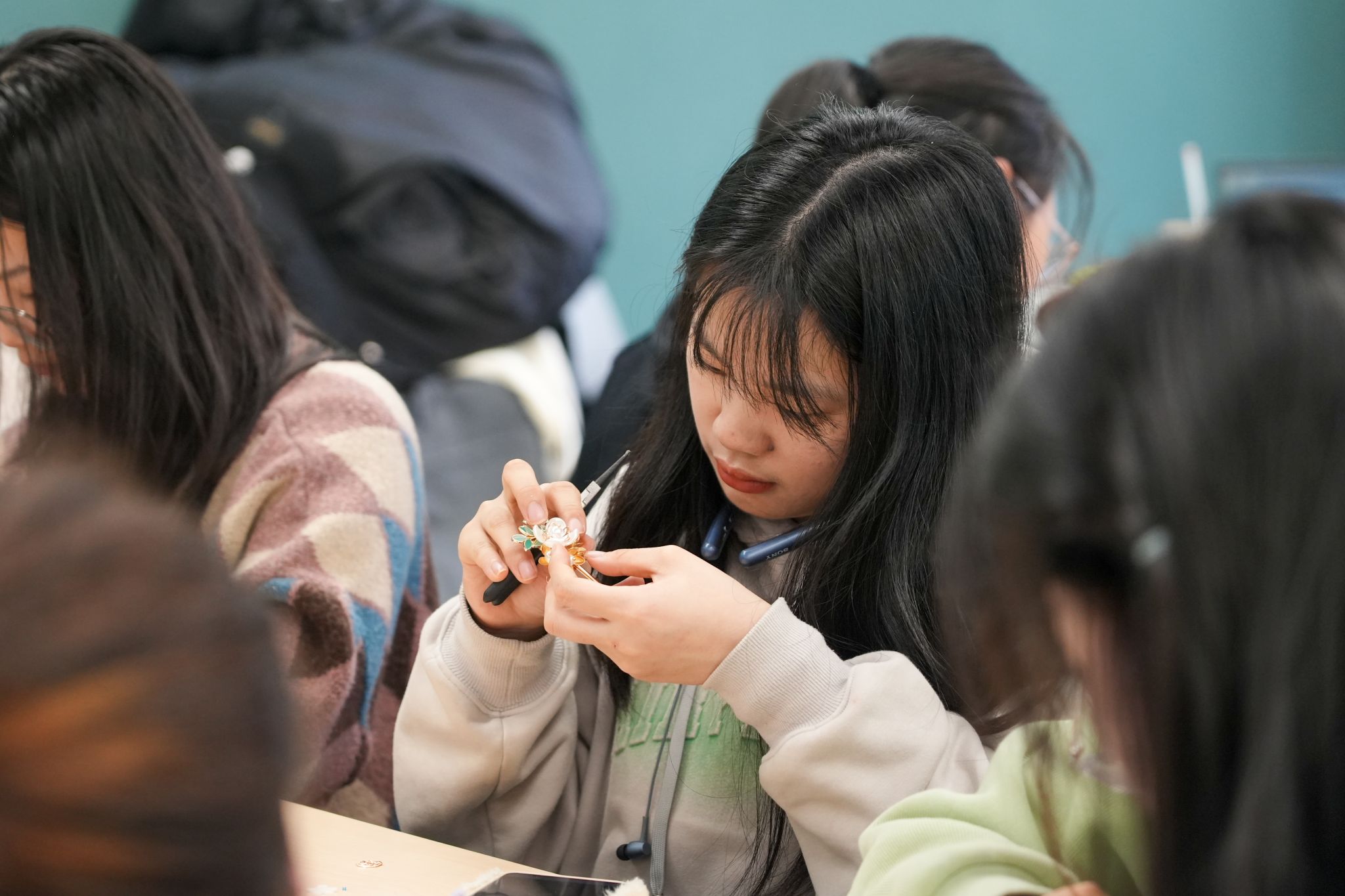 嫩蕊初发,春意盎然。为庆祝女生节到来,丰富校园文化生活,加强美育浸润,3月6日下午,bat365官网登录入口在翡翠湖校区一号宿舍楼沙龙空间举办“玉手弄巧,发簪芊芊”女生节活动,学院女生20余人参加此次活动。