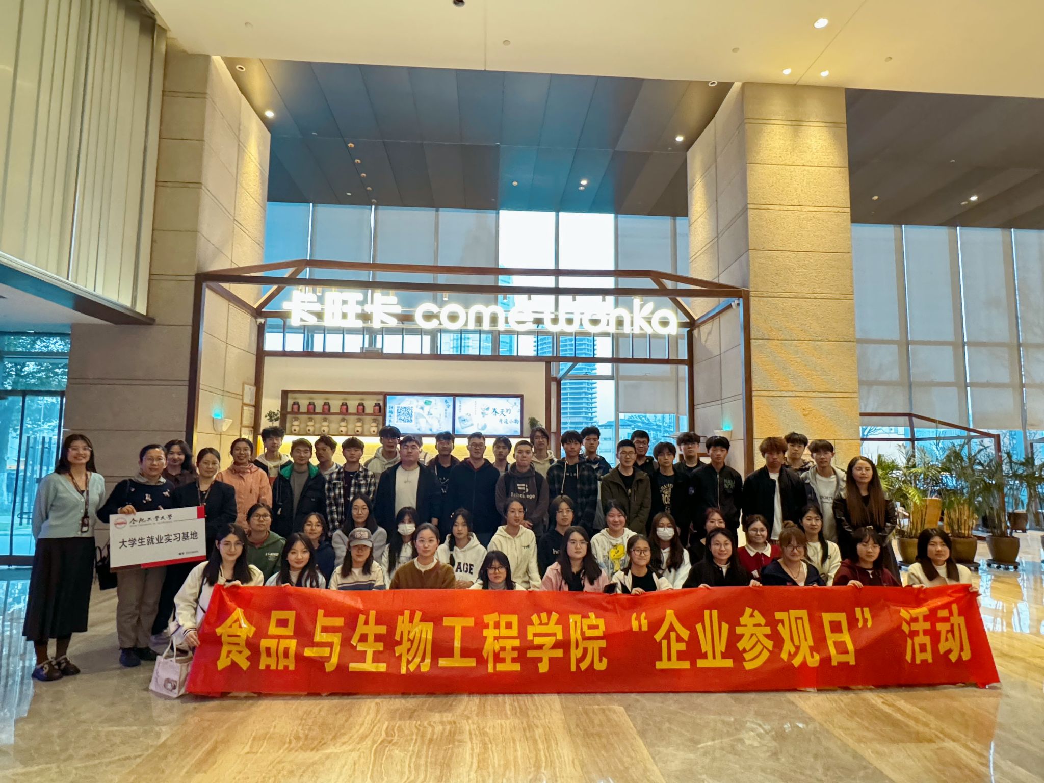 为深入推进我校与优质企业的合作交流,促进大学生尽早进行职业规划和就业实习,3月20日下午,学院党委副书记兼纪委书记李艳、辅导员努尔比耶姆带队,组织制药工程、药学、生物工程、食品科学与工程等专业学生近50人赴安徽卡旺卡餐饮有限公司开展专业认知实践和访企拓岗活动。