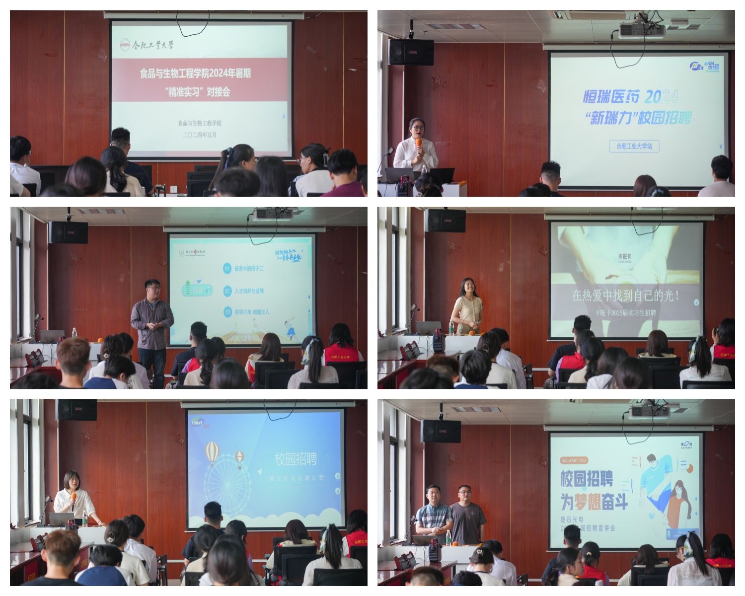 为做好本次暑期“精准实习”对接会,学院提前积极筹备谋划,多渠道发布邀请函,联络企业参会,仔细完成各单位资质审核、信息报备等工作。本次对接会吸引了江苏恒瑞医药股份有限公司、扬子江药业集团有限公司、安徽卡旺卡餐饮有限公司、福元药业有限公司、安徽捷迅光电技术有限公司、安徽聚丰检验检测有限公司等共计6家优质用人单位,提供了多类型实习岗位,满足了学院学生多样化、多方面暑期实习需求。