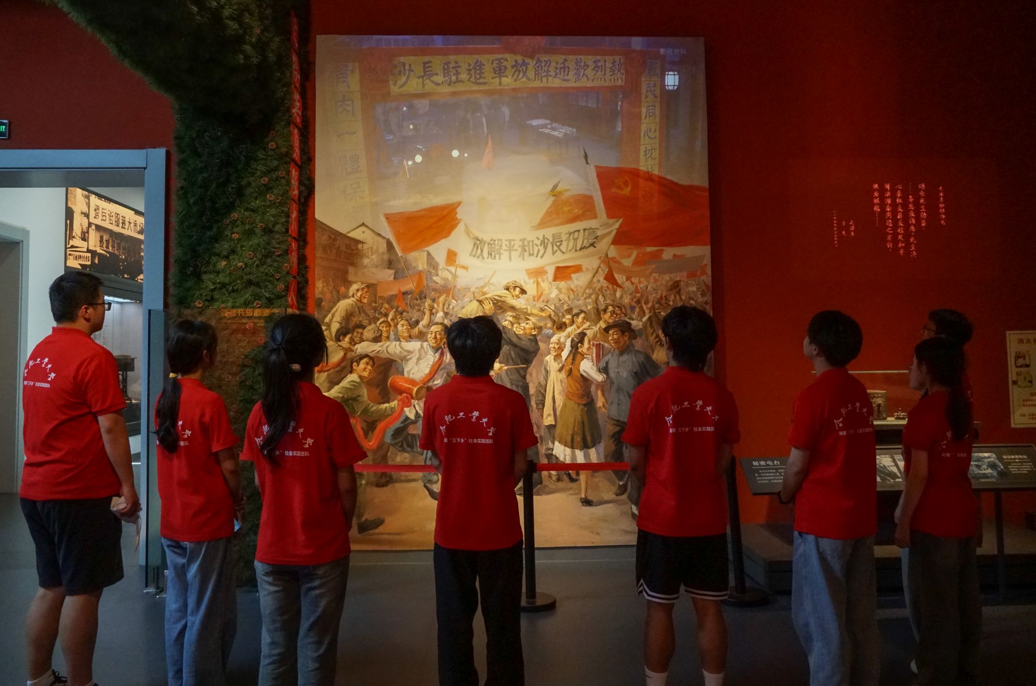 陈列馆庄重肃穆,将队员们的思绪拉回到一百多年前的中国,随着俄国十月革命一声炮响,湖南人的奋斗精神在以毛泽东为代表的“一班可爱可敬的青年身上复活了”。