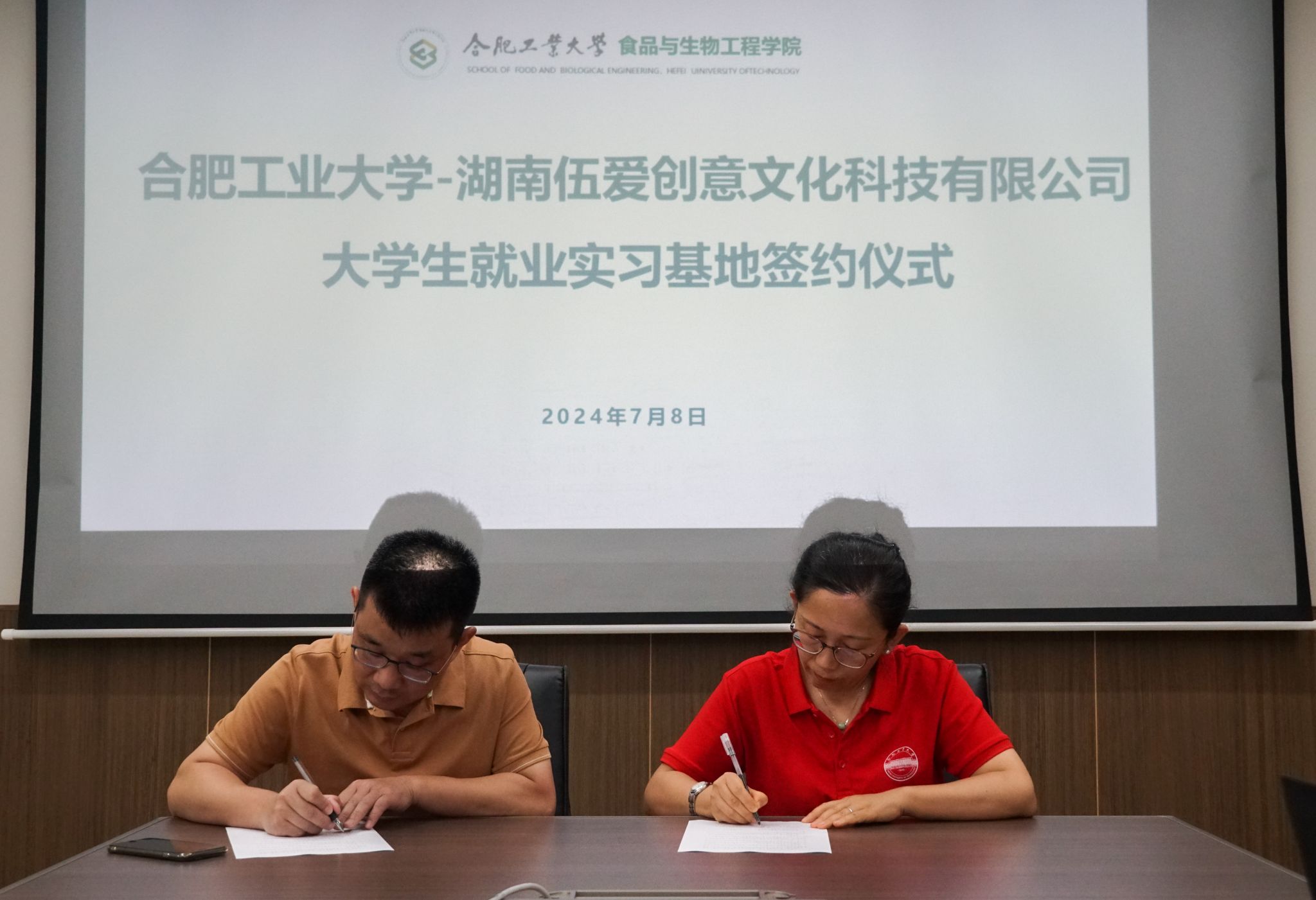 湖南伍爱创意文化科技有限公司董事长、我校2008届优秀校友钱勇军对bat365官网登录入口师生一行的到访表示热烈欢迎,并就创业历程、企业发展、企业文化和未来展望等方面向我院师生做了详细介绍,特别介绍了黑色经典臭豆腐成功破圈之路,使在场师生对企业文化、主要产品、建设规模和在食品领域的创新成果有了更深入的了解。接着,李艳就学院整体情况进行简要介绍,并希望未来在大学生就业实习、科研创新等方面促成校企合作,双方达成一致意见。随后,双方在《共建合肥工业大学大学生就业实习基地协议书》上签字。最后,师生一行参观公司运营部,现场试吃最新产品,进一步了解公司主营业务和文化。
