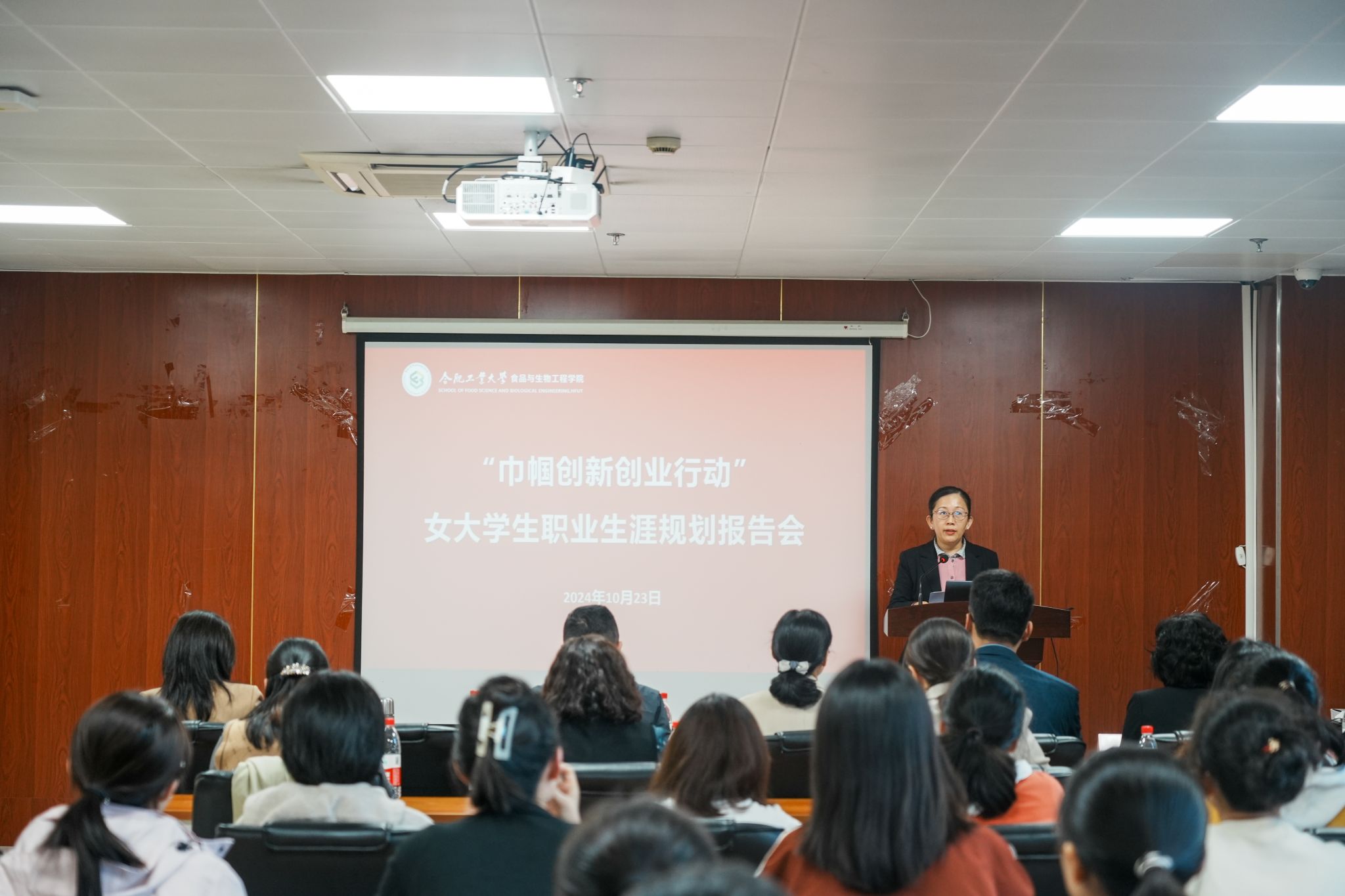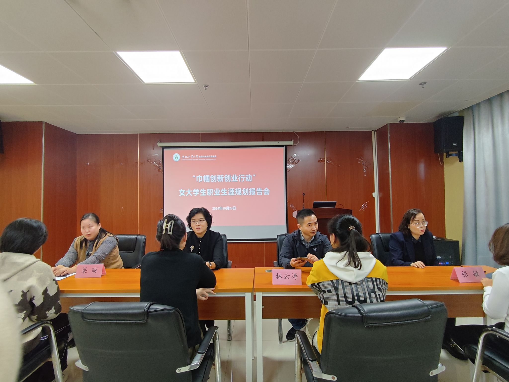10月23日下午,在翡翠湖校区bat365官网登录入口206会议室成功开展“巾帼创新创业行动”女大学生职业生涯规划报告会,活动由合肥经开区妇联、合肥经开区组织人事局、合肥工业大学党委学生工作部(处)“筑梦·启航”职业规划与就业指导工作室、申博人力资源集团联合举办。bat365官网登录入口副书记兼纪委书记、工作室负责人李艳担任主持。
