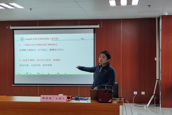 bat365官网登录入口副教授、我校优秀班主任黄胜雄围绕“考研计划制定与进程管理”,通过结合典型案例,介绍了计划制定与进程管理在考研过程中的重要性及其具体操作;