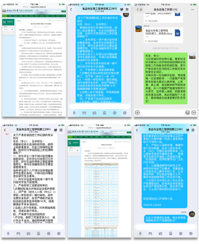 1月24日院党委建立疫情防控专用工作群,各教工党支部书记按照要求每天掌握教职工健康和动向,坚持“日报告、零报告”,做到底数清、情况明。院内各单位依托QQ、微信群与教职工保持密切联系,确保疫情防控、教学科研等工作扎实推进。辅导员通过每日健康打卡,实时跟踪掌握学生疫情防控相关情况。同时通过组织线上主题党日、团日、班会等形式,做到防疫期间组织生活、个人防护、心理疏导、学生就业、考研引导等重点工作不停顿。