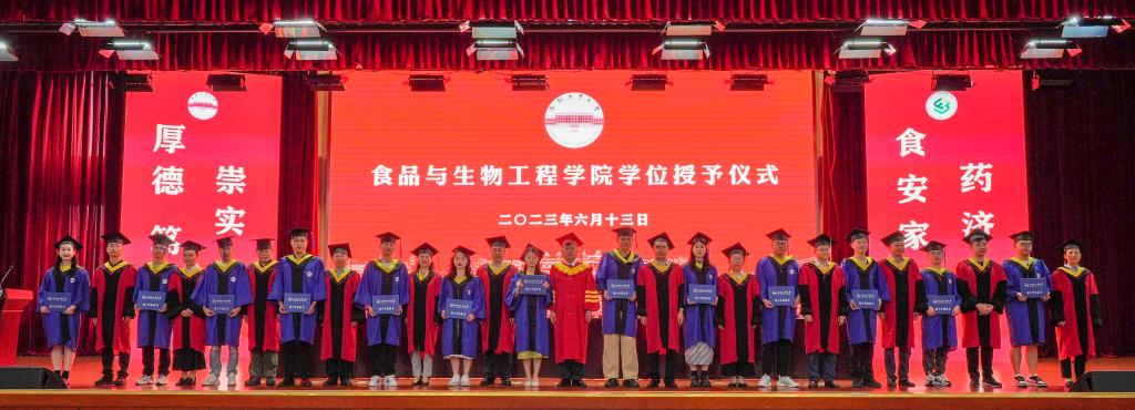 仪式在庄严隆重的国歌声中拉开序幕,bat365官网登录入口院长、学院学位分委员会主任徐宝才教授宣读了《关于授予bat365官网登录入口2023届毕业生学位的决定》,校、院领导老师为全体学位获得者扶正流苏、颁发学位证书并合影留念。