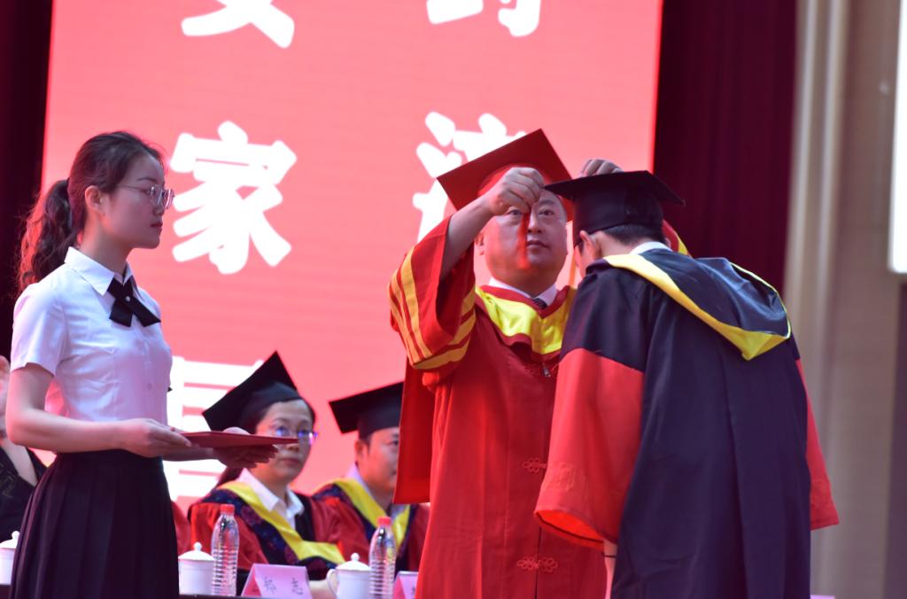 党委书记余其俊对毕业生们获得学位表示祝贺,他对同学们提出了三点希望:一是希望同学们以真理为依归,在矢志不渝、笃行不怠中坚定理想信念;二是希望同学们以求是为底色,在攻坚克难、勇往直前中苦练过硬本领;三是希望同学们以乐观为基调,在艰难险阻、世事磨砺中保持身心健康。