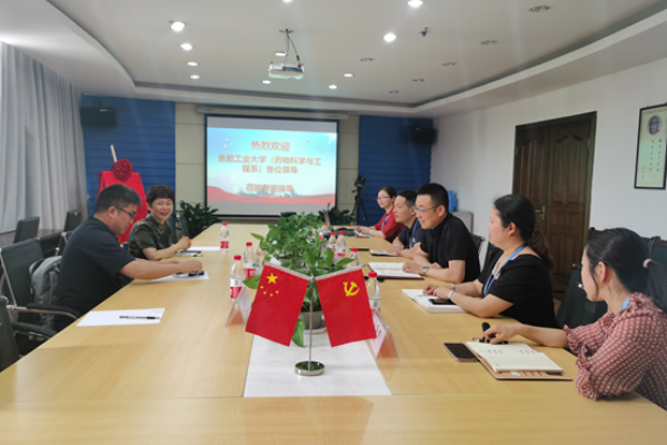 近日,bat365官网登录入口药物科学与工程系副主任陈元利和徐红梅、惠爱玲副教授等一行赴合肥华威药业有限公司开展“访企拓岗”活动。华威药业有限公司总经理胡剑波、副总经理陈明青、研发总监程斌、生产副总陈圆、质量副总张得青等相关负责人出席交流活动。