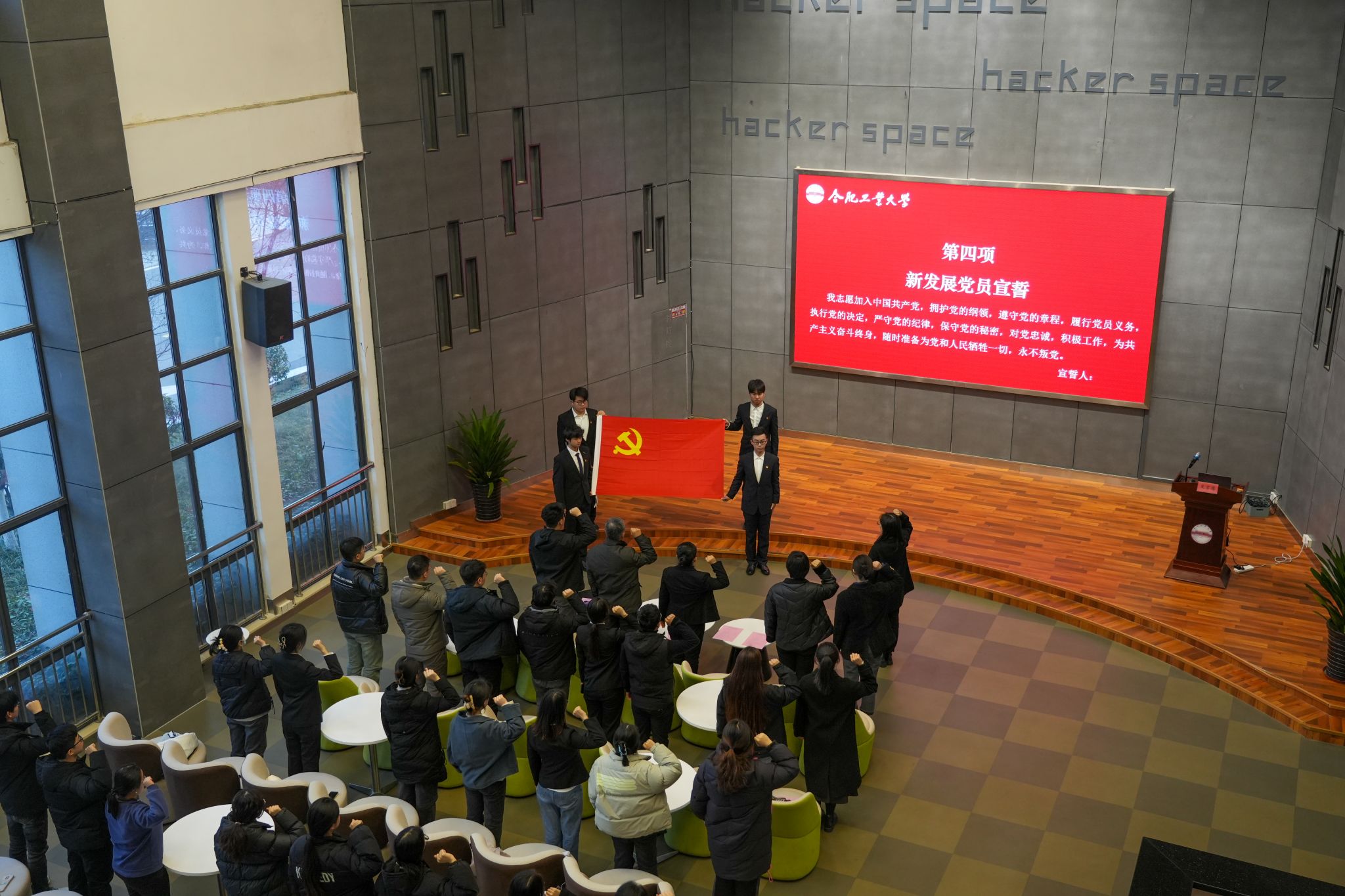 筚路蓝缕,砥砺前行,初心不忘,迈向复兴。入党宣誓仪式在庄重雄浑的《国际歌》中拉开帷幕。随后,全体人员观看了宣传片《中国共产党百年述职报告》,共同感受共产党人用鲜血、汗水、泪水、勇气、智慧、力量写就的百年奋斗路。