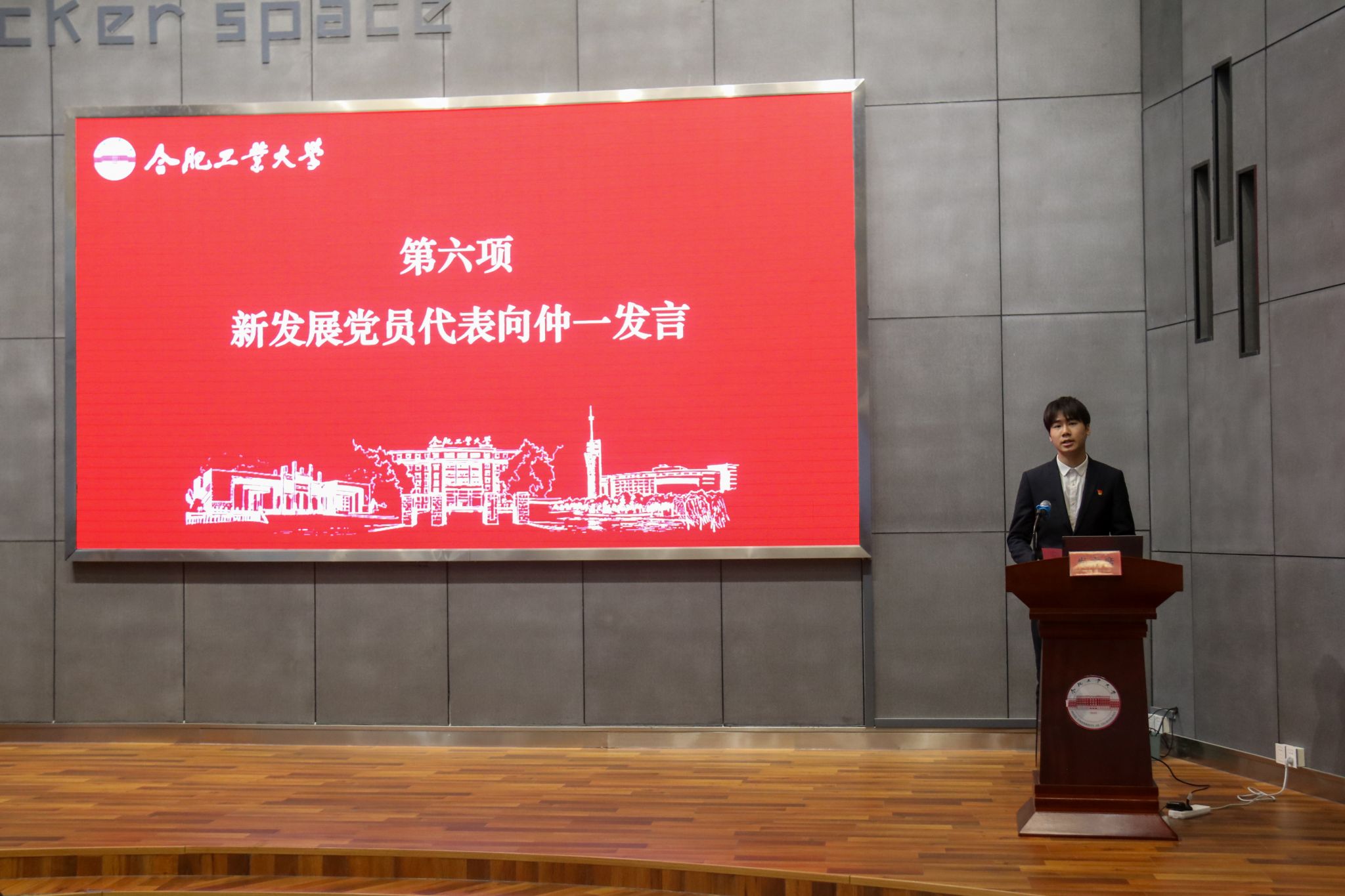 青春激昂,坚定信仰,赤诚满怀,豪情满腔。本科生第二党支部向仲一作为新发展党员代表发言,表达对党组织的热爱和向往、加入党组织的光荣感和自豪感,从坚定理想信念,提高党性修养;强化理论学习,提升综合素质;努力创先争优,发挥先锋作用三方面,诠释新党员的赤诚忠心。