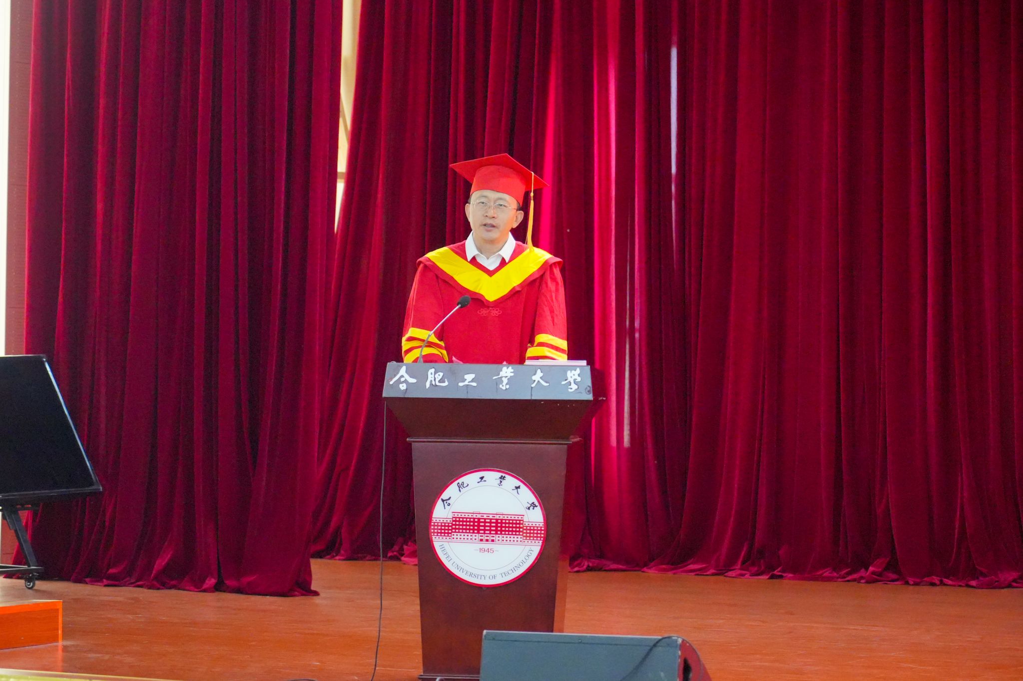 于祥成代表学校向圆满完成学业并获得学位的毕业生表示祝贺,向关心支持学生完成学业的老师、家长表示衷心的感谢,同时对同学们提出殷切期望:一是希望大家厚植家国情怀,坚定信仰、爱国奉献,把自己的小我融入祖国的大我、人民的大我之中,与时代同步伐、与人民共命运,努力成为让党放心、爱国奉献、担当民族复兴重任的时代新人。二是希望大家牢记历史担当,勇担使命、砥砺奋进,牢记“请党放心、强国有我”的铮铮誓言,秉承“厚德、笃学、崇实、尚新”的校训精神,自觉扛起强国建设的使命与担当,以敢为人先、坚韧不拔的志气,逢山开路、遇河架桥的勇气,探索真知、求真务实的锐气,做走在时代前列的奋进者、开拓者、奉献者。三是希望大家秉承工大传统,脚踏实地、久久为功,勇担时代重任,主动接过工业强国的“接力棒”,走好新时代的“长征路”,勇当改革发展的“弄潮儿”,在各行各业勤勉耕耘、静待收获,大展工大人风采。