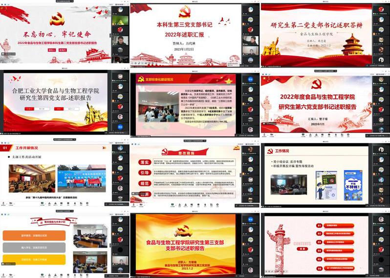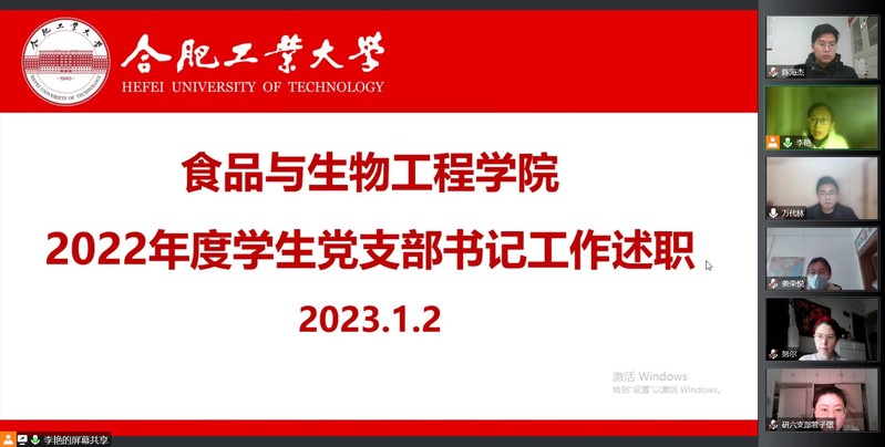 为进一步做好2022年度学院学生党支部考核工作,推动高校党建和思想政治工作高质量发展,做深做实学生党支部品牌创建,bat365官网登录入口于1月2日下午线上开展了2022年度学生党支部书记工作述职答辩会。学院党委副书记李艳、研究生辅导员张倩出席会议,各学生党支部书记参加了本次述职答辩会。