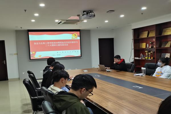贾亚峰领学了党的二十大报告中关于过去五年,党和国家所取得的一系列伟大成就的重要论述,并以习近平总书记提出的“不断实现人民对美好生活的向往”为切入点,点出“吃得安全”“吃得健康”是人民群众美好生活的重要内容,食品安全和营养健康关系到每个家庭、每位人民群众,也是每个食生人应该着重关注的方向。同时,他从现存的食品安全问题、食品安全典型案例和食品安全解决方法等三个方面,详细讲解了食品行业所面临的一些问题和困境。他引导党员同学始终牢记学院“食安家国,药济民生”育人理念,自觉增强食品安全知识的学习者、创新者、传播者的角色意识和责任意识,以实际行动为构建食品安全社会共治格局贡献青春力量。